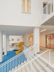 You stop under a huge Spar supermarket with a school on top, on the way to meeting Anna Popelka. Suddenly you find yourself on a level with Harry Glück’s infamous 1970s Alterlaa residential complex, a game-changer in the metropolitan area, loved and hated at the same time. It delimits the eastern horizon, the dimensions have changed on site: enclosed space between the ennobled supermarket – it defines the building line – and “Rivus Vivere”, the reason for the journey. Anna Popelka immediately talks about this environment and the history of the “wide ford”, another name for the multifunctional superstructure, in front of the gently bustling café of her large residential building. Working together with Georg Poduschka and the team from PPAG architects, it was completed for BUWOG in February 2023 – seven years after the start of planning. And there it is, the “Urban Building Block”, between the wide road to Vienna and countless new residential buildings, monoliths that, despite all the restrictions on social housing, always manage to mark “otherness” compared to their neighbours. This project is different.